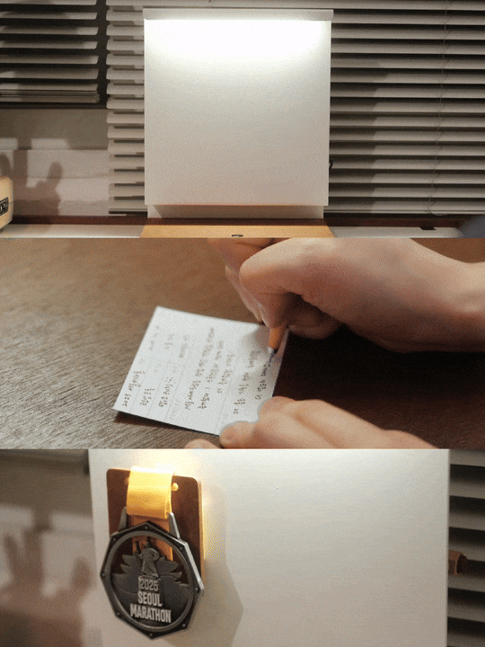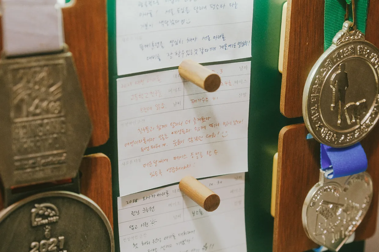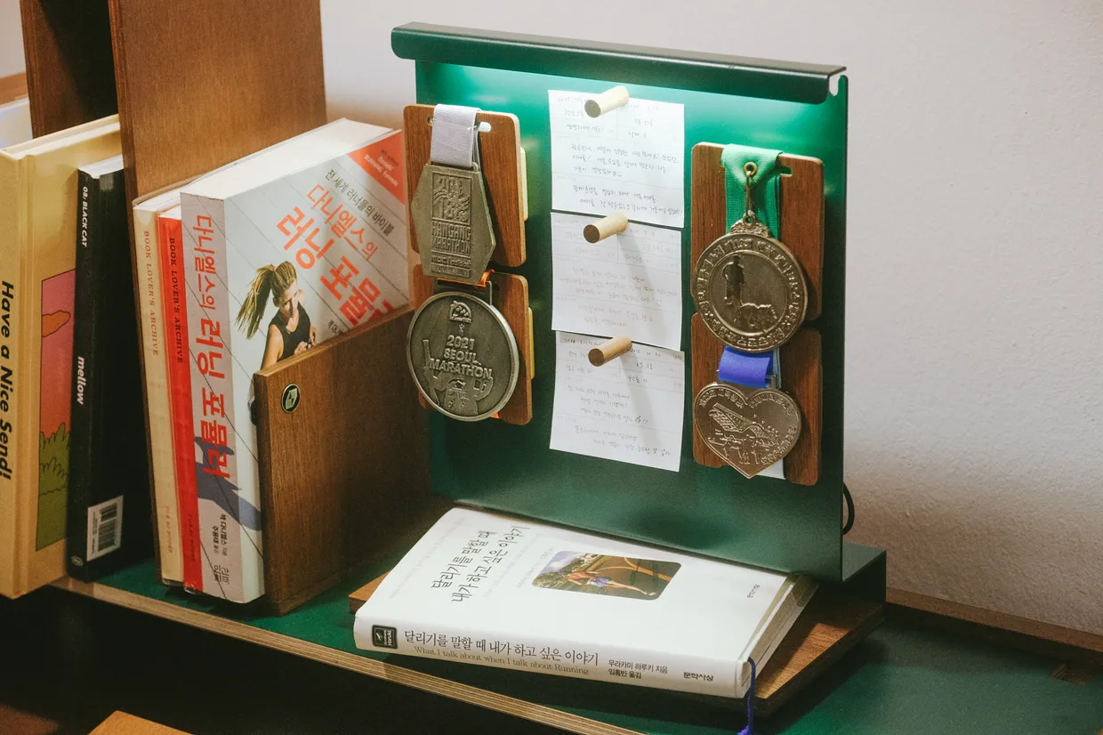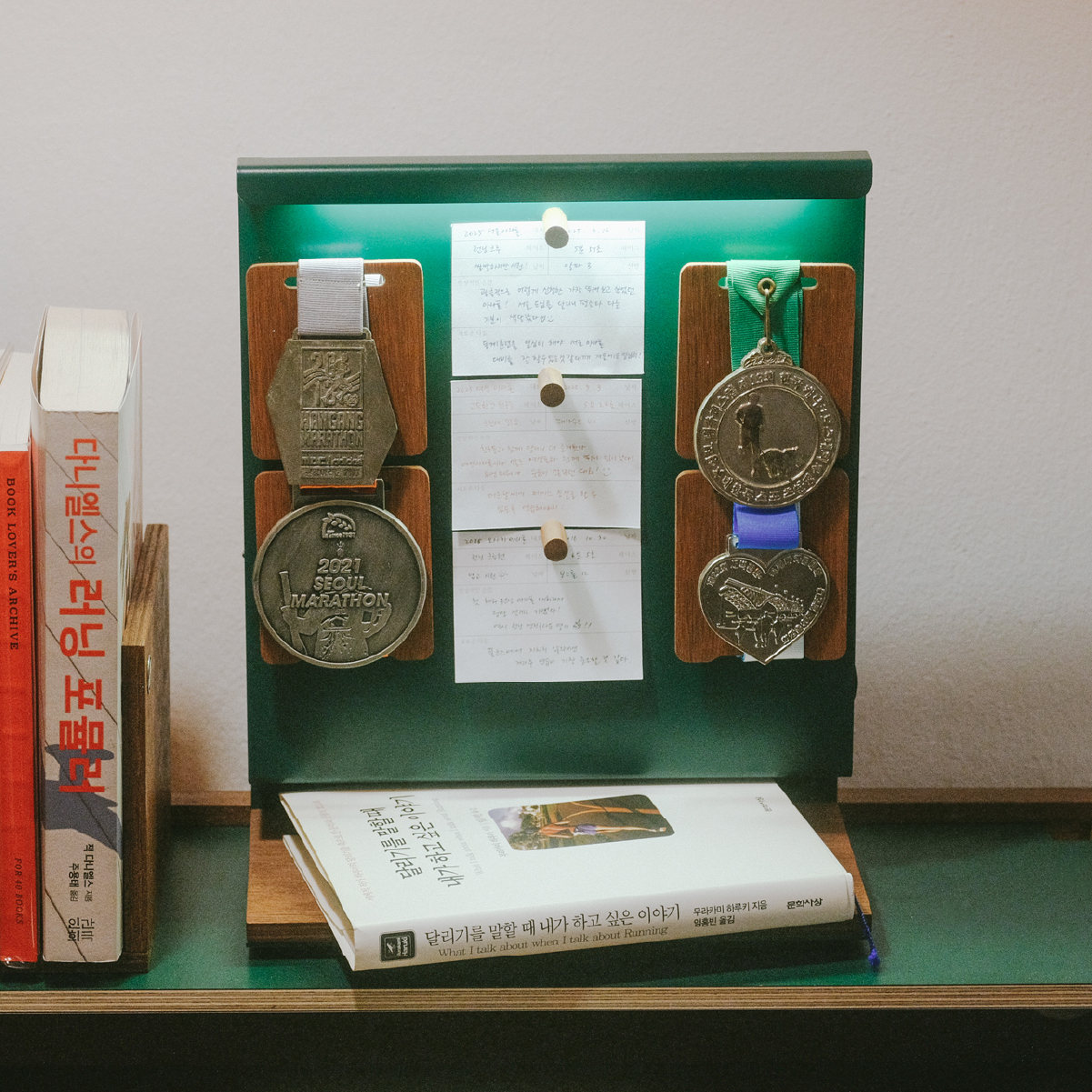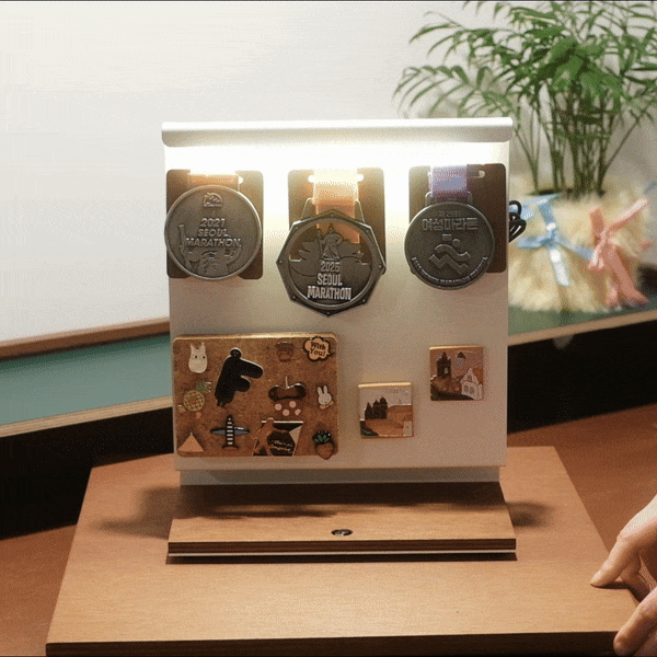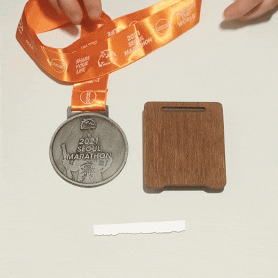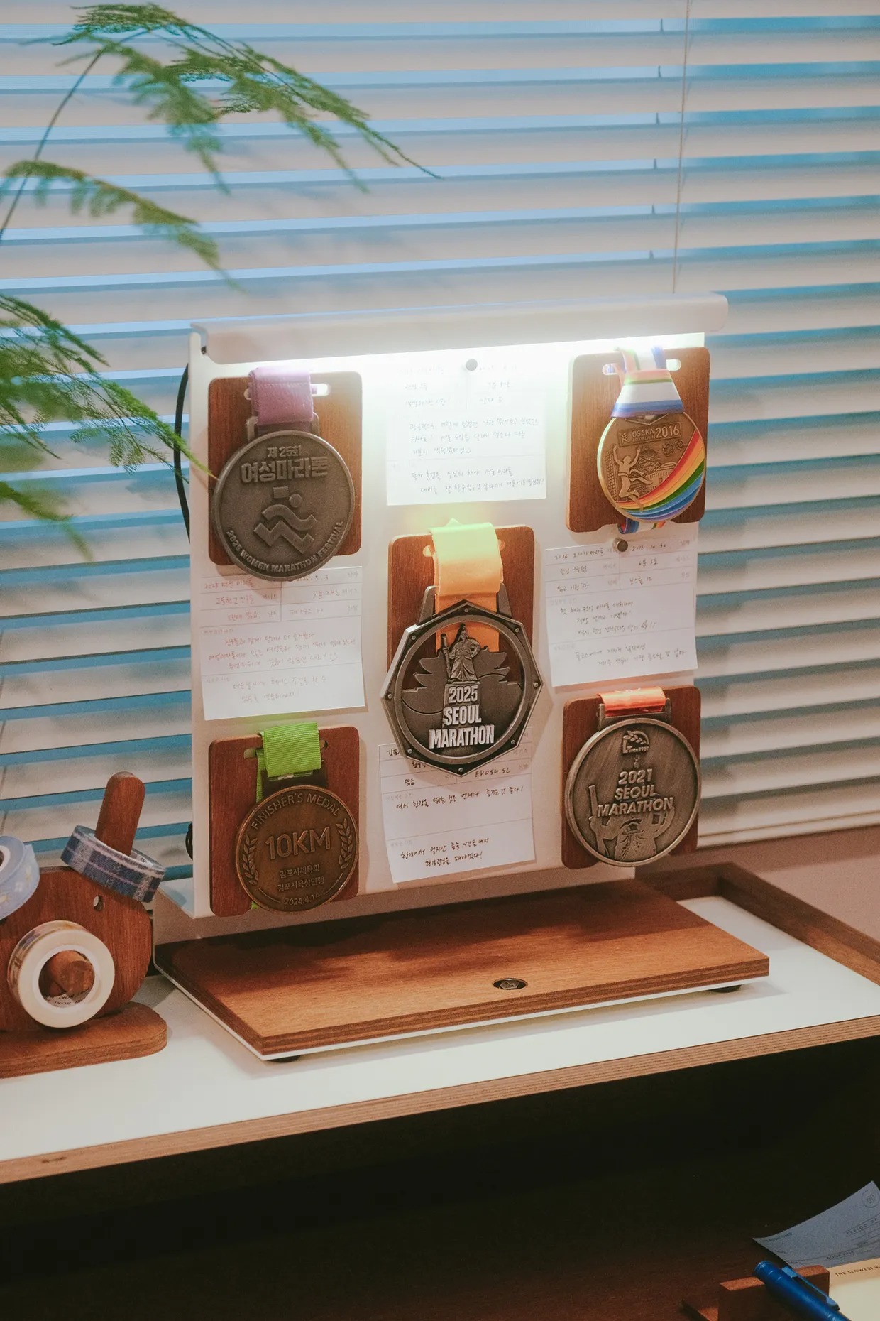 '완주 메달'을 거치할 수 있도록 돕습니다.