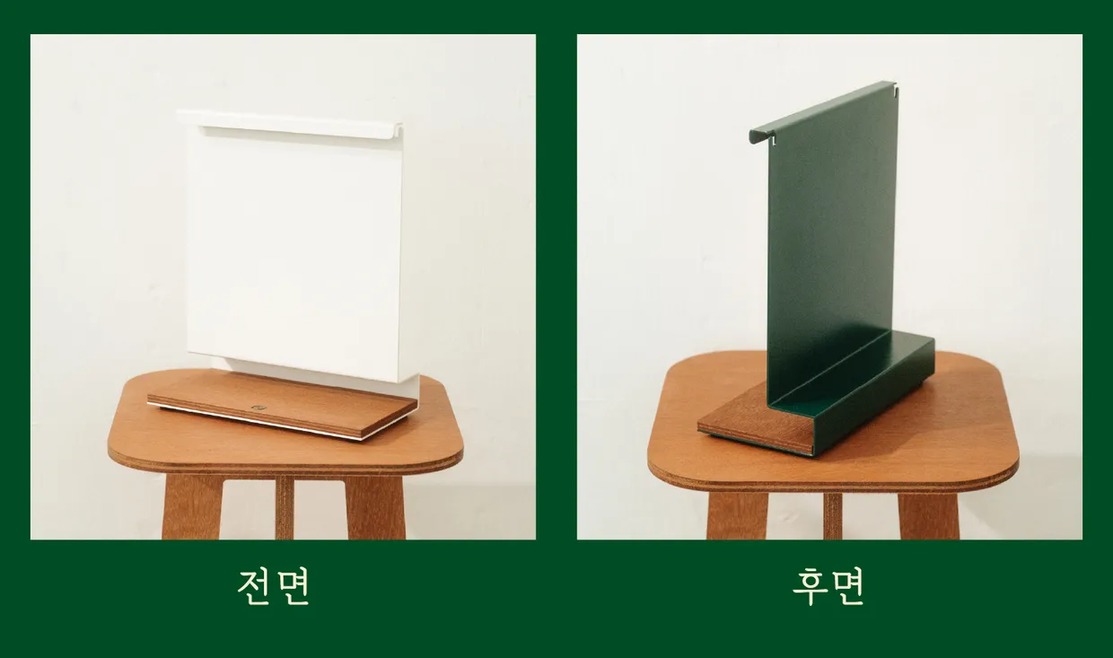 화이트/딥그린 2가지 컬러로 구성된 '스탠드는'
